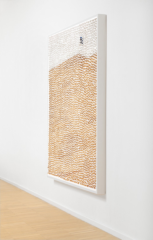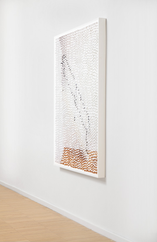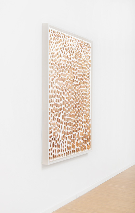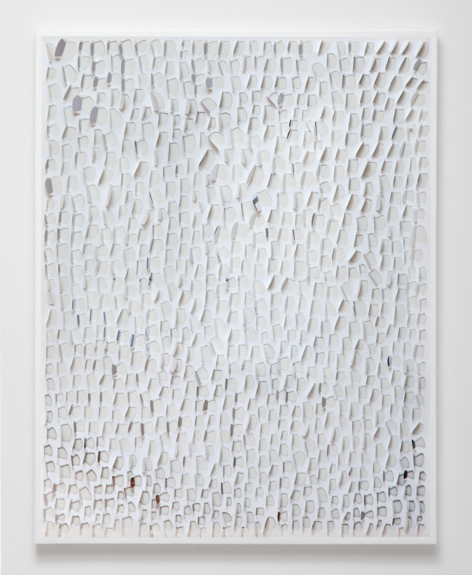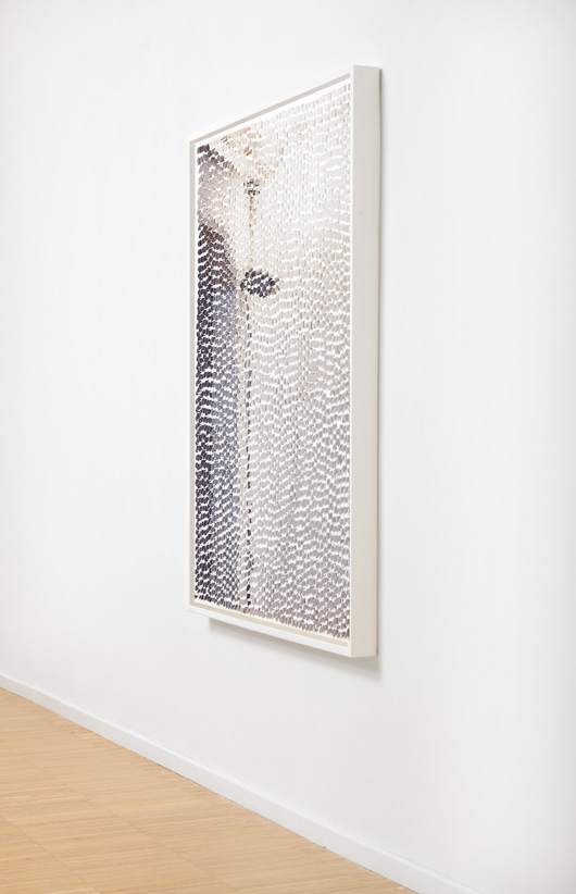 In his third solo exhibition at Luce Gallery, Curtis Mann continues his exploration of the physical image. For this exhibition, Mann uses images made of the gallery space and items or people that exist in the space, prints them, turns them over and then cuts various sized openings in the back of the photographic prints. The slits are then folded out revealing the imagery through distorted windows, which creates a soft, unclear and sometimes confused version of the original image. The work relies on its own physicality and the viewer’s angle of view to give a new and slightly altered reading and presence. The final works offer a physical and sculptural entry to the photographic space and hope to elicit conversations of image, object and the complexities of visual experience. The vision of these successive layers of reality, one above the other, depends solely on the observer, on the point of view that he chooses; thus opening the work to multiple interpretations and giving us the complexity of the viewing experience. The visitor is surrounded by pictures of the space in which he is located, but the images are modified so as to produce a particular effect of estrangement. The gallery becomes a shared space, a place where the works stimulate reflection and vision, but also an area where everyone can be mirrored and, once the confusion disappears, one can find themselves. Curtis Mann uses mainly an approach that is located somewhare between photography and sculpture. In his early works he intervened on images that he found on the web, using photoshop or mechanical work. Today the artist makes another step forward taking the pictures himself, making them the raw material on which he afterwards intervenes with cuts and ripples; thus opening a window - or more than one – on the reality portrayed and on its transformation depending on the point of view of the observer. With Verso Curtis Mann builds up a game of boxes and variations on the subject of the space that sourronds him, a visual and sensory experience.
