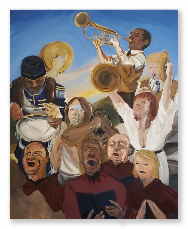 Included in the nineteen newly made artworks on view are a selection of works by artists who have collaborated with the gallery the longest, including a 1970's inspired portrait by Robert Davis, two floral still-life paintings —composed with his signature single-use plastic technique—on panel by Hugo McCloud, a tranquil leisure landscape by Peter Mohall, and featuring a playful sculpture by Derek Fordjour of upturned legs precariously balancing a glass yellow ball. In recent years, other noteworthy artists such as Dominic Chambers, Ryan Cosbert, Yowshien Kuo, Johanna Mirabel, Demarco Mosby, Ludovic Nkoth, Collins Obijiaku, and Zéh Palito have joined the fold. Each brings a distinct 'language' of painting incorporating elements of surrealism, portraiture, and abstraction, expressing the complexities of race, gender, humanity, and memory. Additionally, the newest members to the program include two artists inspired by the landscape, Connie Harrison creating dense abstracted gardens both painted and excavated from oil and wax layers, and Francesco Pirazzi harnessing the mysterious nature of light in a surrealist style, with both artists debuting their solo shows later this year.