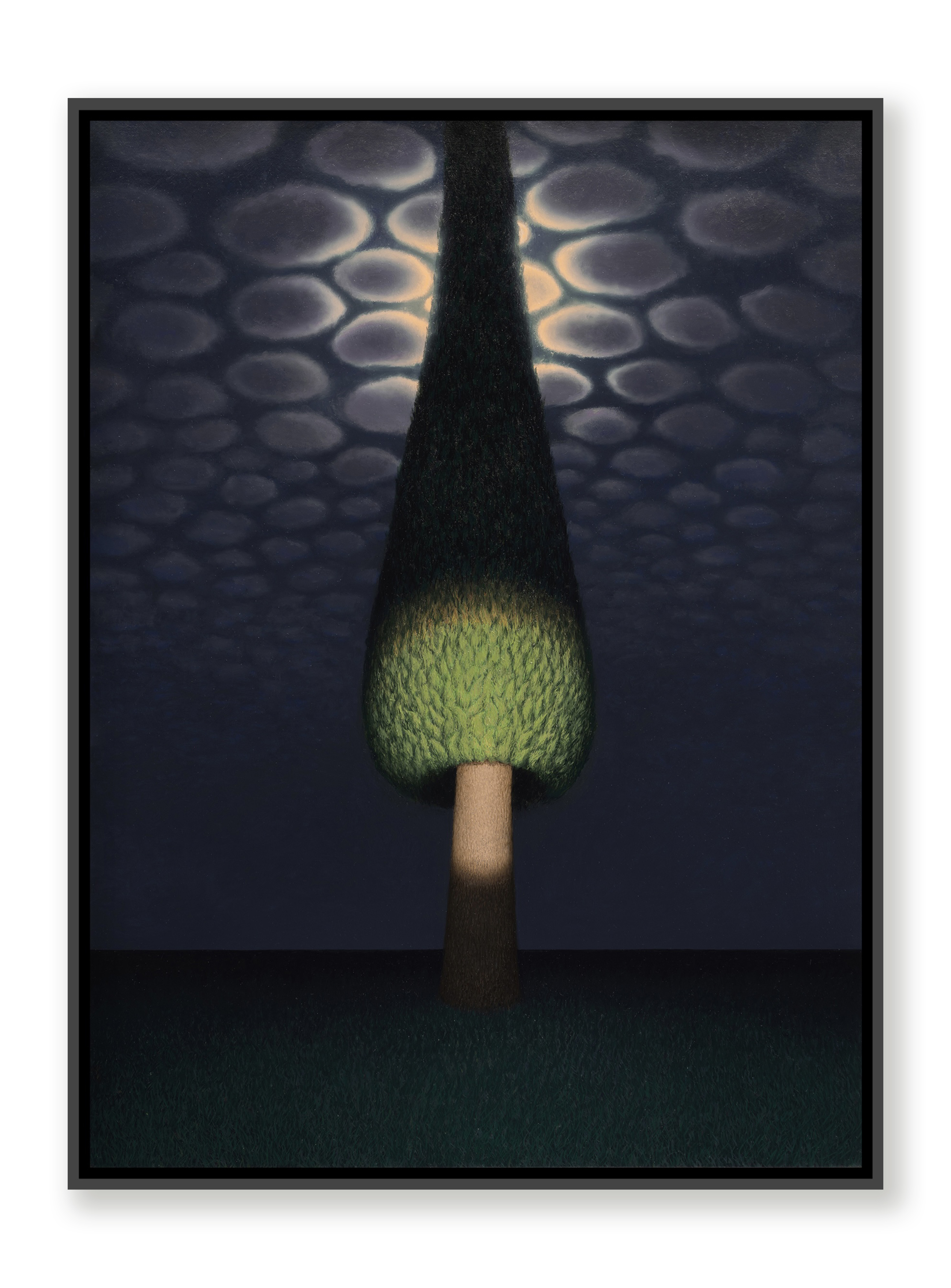 Pirazzi's distinctive use of dramatic light within cityscapes and landscapes illuminates the mystery of each scene. In this series of new works, the artist cautiously navigates the changes to his environment after relocating to Turin from Florence. What unfolds are observations from a distant high vantage point, gradually pulling in closer from painting to painting. Thoughtfully placed lampposts, trees, and buildings set the stage for narratives that feel unusually familiar yet lost to time and space. When viewed together, the artworks in Coro a Bocca Chiusa evoke a sense of mystery, enticing viewers to examine each scene for the subtle cracks in reality and to question each illuminated path.