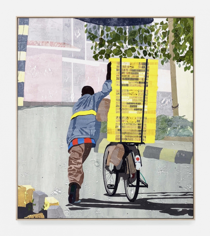 Included in the nineteen newly made artworks on view are a selection of works by artists who have collaborated with the gallery the longest, including a 1970's inspired portrait by Robert Davis, two floral still-life paintings —composed with his signature single-use plastic technique—on panel by Hugo McCloud, a tranquil leisure landscape by Peter Mohall, and featuring a playful sculpture by Derek Fordjour of upturned legs precariously balancing a glass yellow ball. In recent years, other noteworthy artists such as Dominic Chambers, Ryan Cosbert, Yowshien Kuo, Johanna Mirabel, Demarco Mosby, Ludovic Nkoth, Collins Obijiaku, and Zéh Palito have joined the fold. Each brings a distinct 'language' of painting incorporating elements of surrealism, portraiture, and abstraction, expressing the complexities of race, gender, humanity, and memory. Additionally, the newest members to the program include two artists inspired by the landscape, Connie Harrison creating dense abstracted gardens both painted and excavated from oil and wax layers, and Francesco Pirazzi harnessing the mysterious nature of light in a surrealist style, with both artists debuting their solo shows later this year.