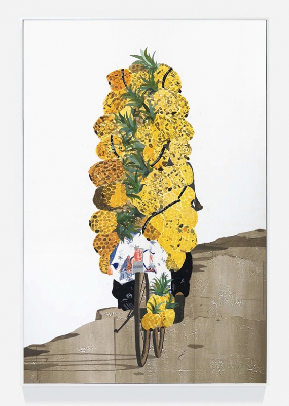 Hugo McCloud (American, b.1980) is a self-taught artist based in Los Angeles. Drawn to unconventional materials, he creates detailed representational works using his technique of 'painting' with single-use plastic bags that fuse industrial products with traditional painting, collage, and printmaking techniques. By using ubiquitous materials like single-use plastic, both McCloud's materials and subject matter directly address issues of labor, geopolitics, and environmental concerns, providing us with a deeper connection to our humanity.
