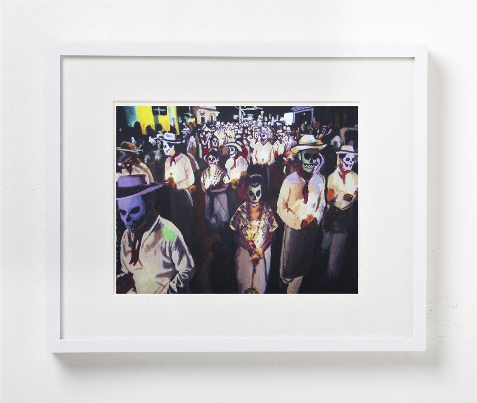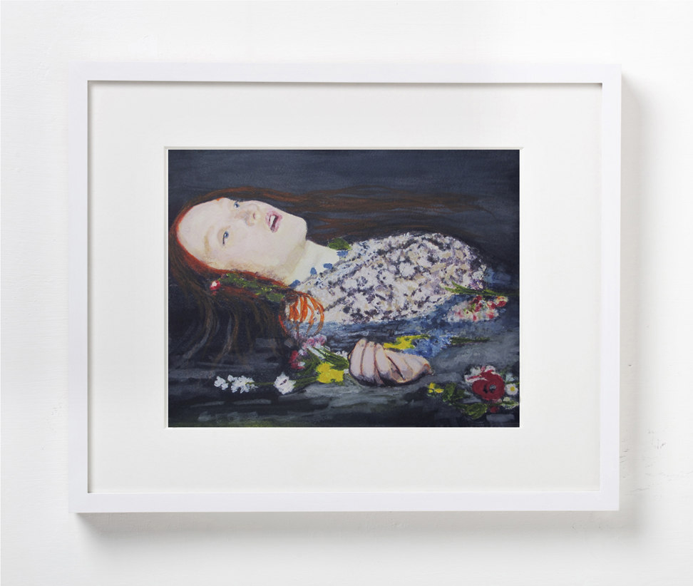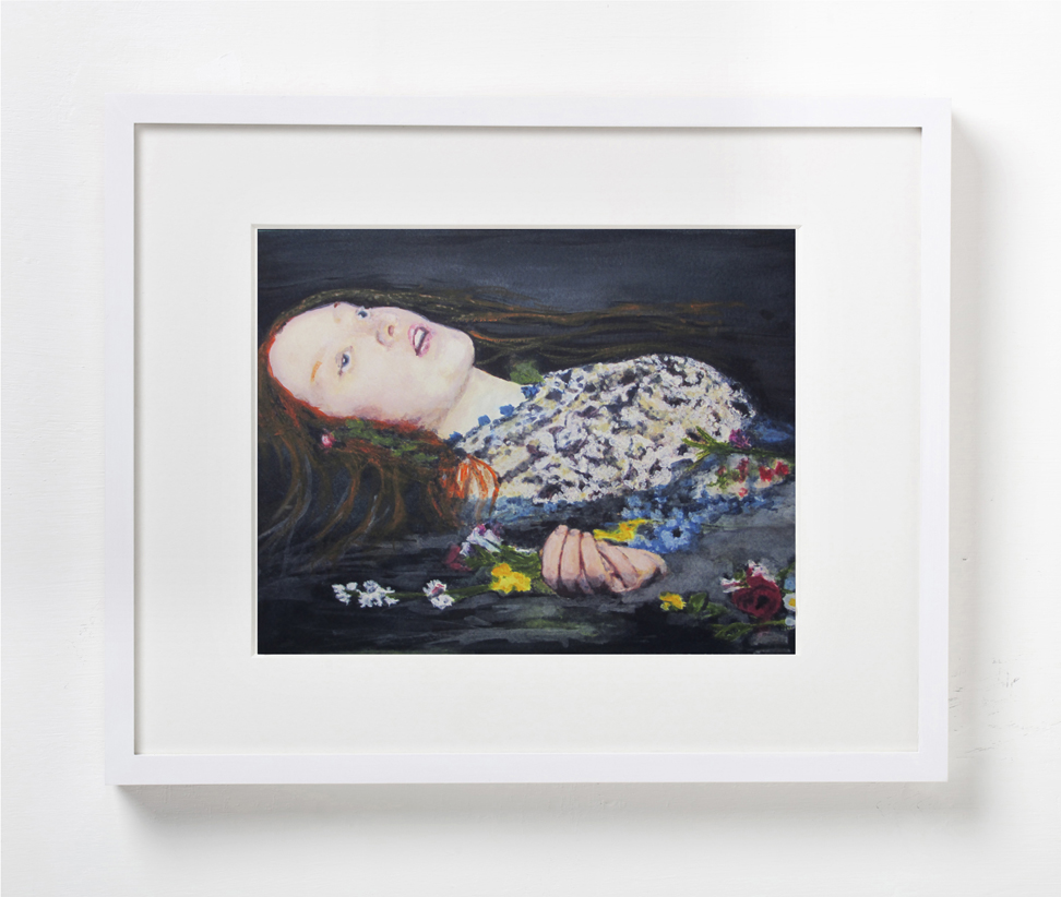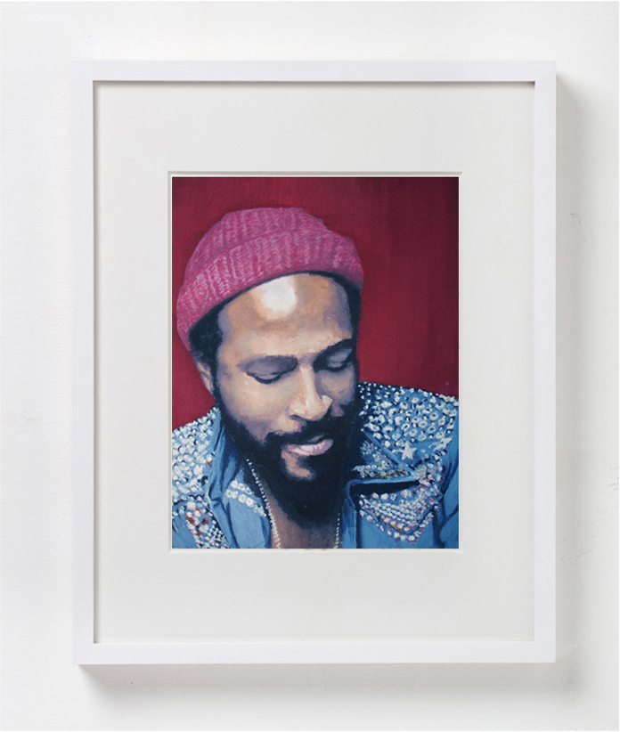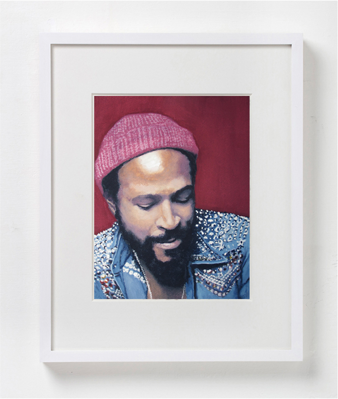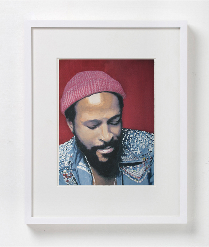 The notion of circularity in both the work and the exhibition title plays out more directly in pieces rendered multiple times: three of the same portrait of Marvin Gays, four versions of “Ophelia” after John Everett Millais, two paintings of the Grateful Dead’s iconic “skeleton”.