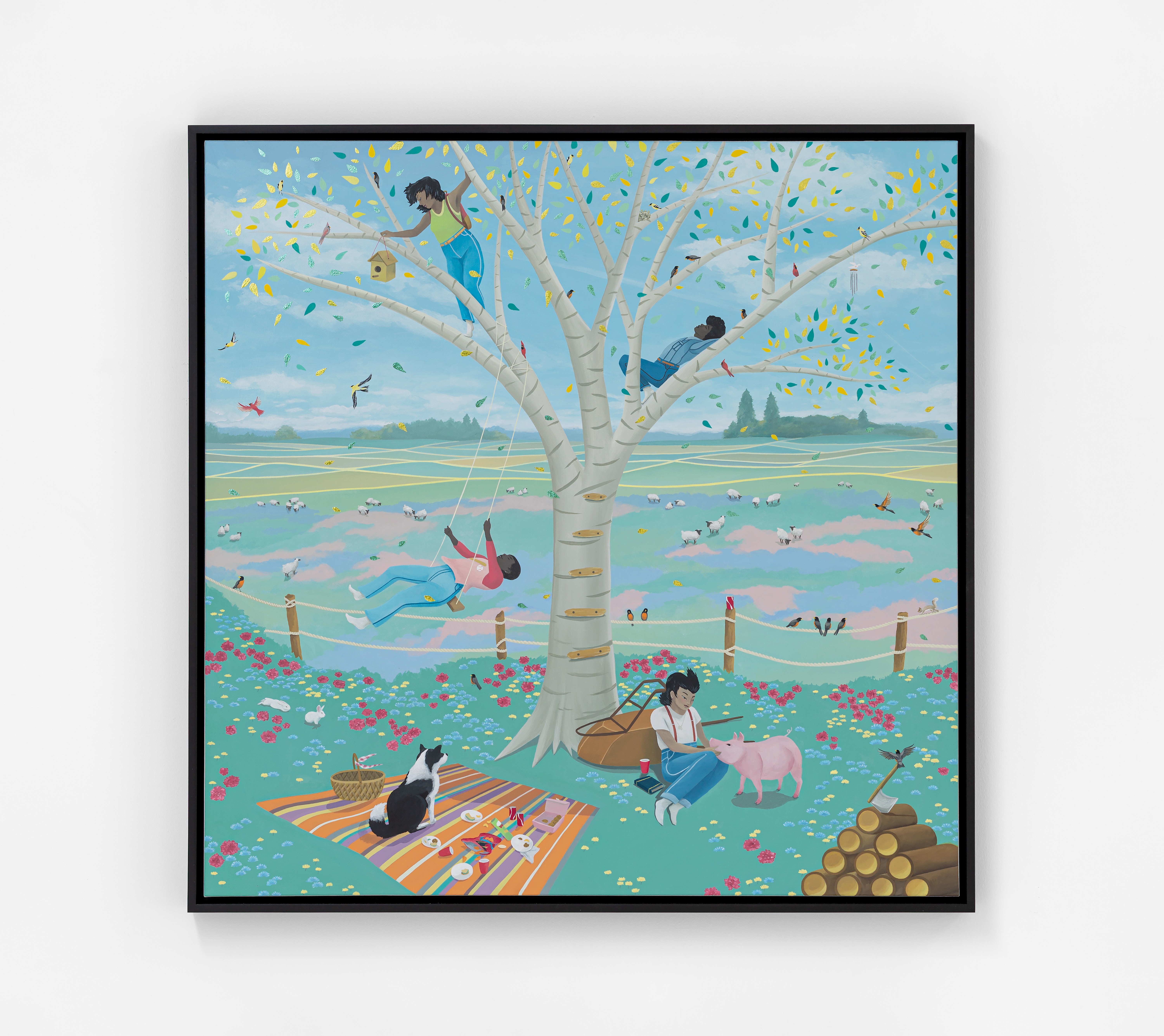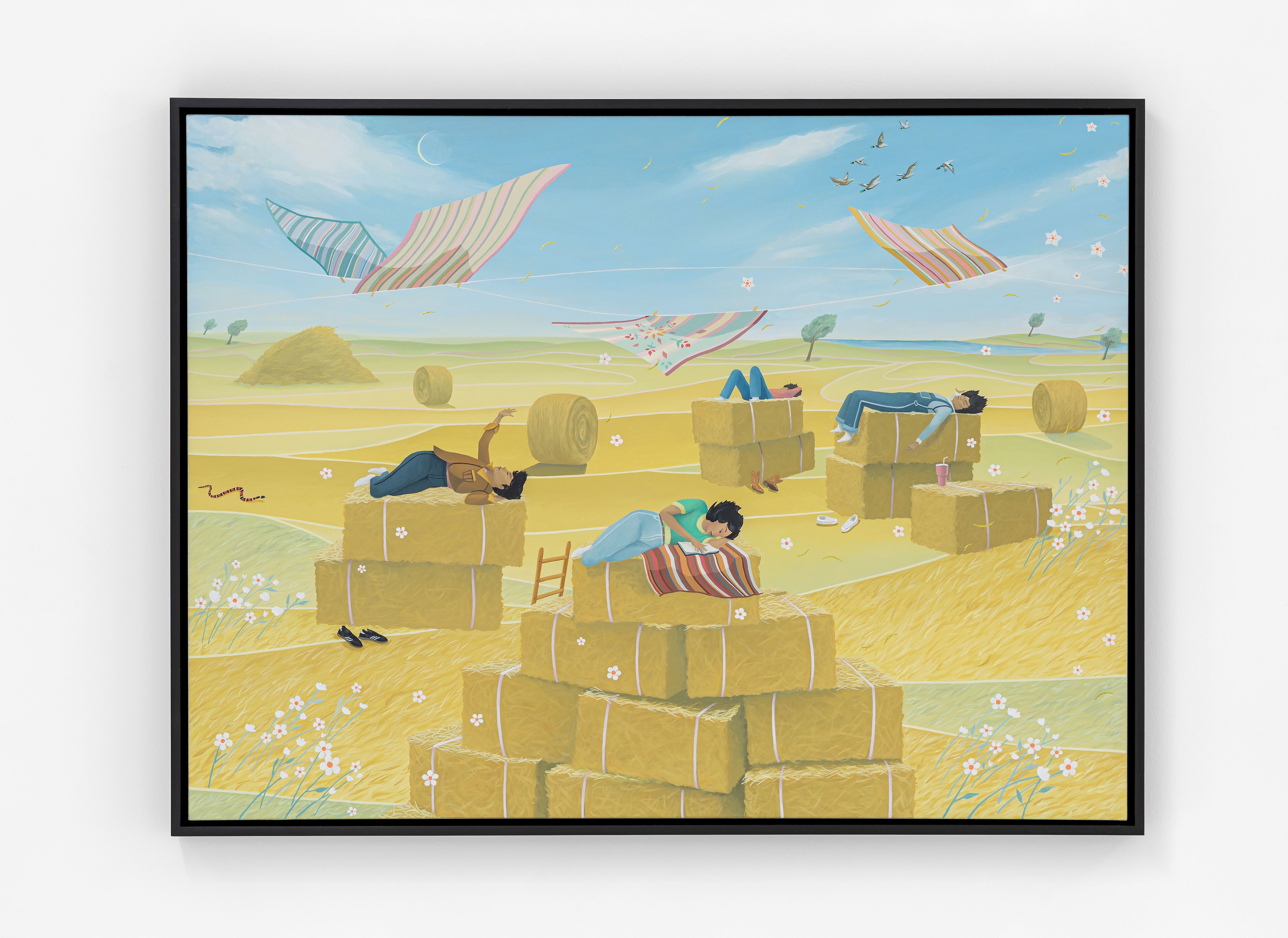 Included in the nineteen newly made artworks on view are a selection of works by artists who have collaborated with the gallery the longest, including a 1970's inspired portrait by Robert Davis, two floral still-life paintings —composed with his signature single-use plastic technique—on panel by Hugo McCloud, a tranquil leisure landscape by Peter Mohall, and featuring a playful sculpture by Derek Fordjour of upturned legs precariously balancing a glass yellow ball. In recent years, other noteworthy artists such as Dominic Chambers, Ryan Cosbert, Yowshien Kuo, Johanna Mirabel, Demarco Mosby, Ludovic Nkoth, Collins Obijiaku, and Zéh Palito have joined the fold. Each brings a distinct 'language' of painting incorporating elements of surrealism, portraiture, and abstraction, expressing the complexities of race, gender, humanity, and memory. Additionally, the newest members to the program include two artists inspired by the landscape, Connie Harrison creating dense abstracted gardens both painted and excavated from oil and wax layers, and Francesco Pirazzi harnessing the mysterious nature of light in a surrealist style, with both artists debuting their solo shows later this year.