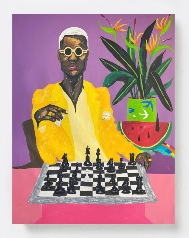 Dominic Chambers (American, b.1993) is a New Haven-based artist originally from St. Louis, Missouri. He paints introspective scenes that illustrate both the interior and exterior self and how this duality co-exists using a bold, vibrant palette. Chamber's surrealist-inspired work draws on both historical and art historical references and is grounded in his experiences as a Black man.
