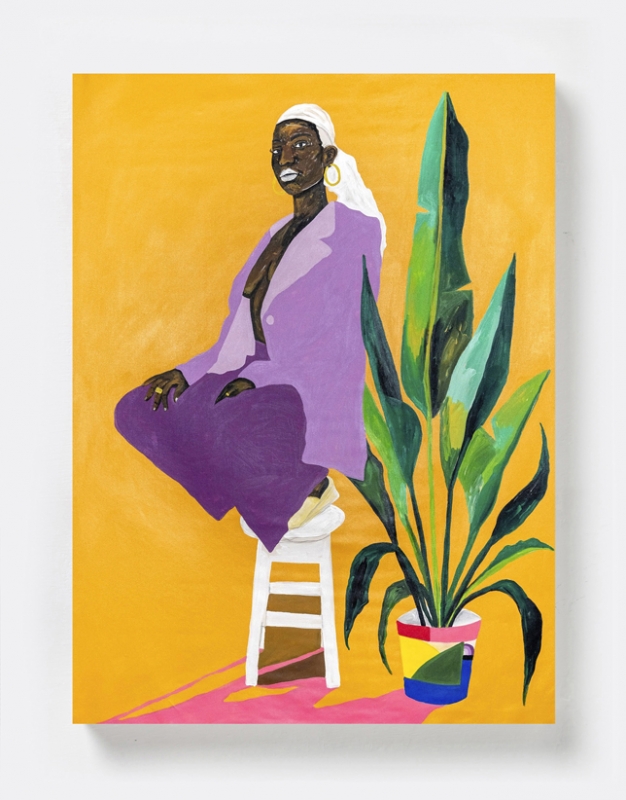 Johanna Mirabel (French, b.1991) is a Paris-based painter whose work explores the intimate connection between our inner thoughts and interior spaces. By combining symbolic hues, tropical plants, household objects, and suggestions of exterior spaces with detailed portraits, the artist creates deeply intimate works that explore the immersive and transportive experience of recalling a memory. Her work draws from her French Guyanese and Martinique-Guadalupe heritage, sociological and philosophical writings, and historical references to Western art.